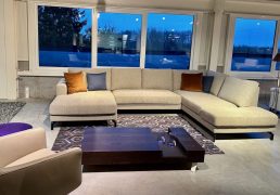 Modern Italiaans hoeksalon met volmetalen onderstel en ophanging voor een constant zitcomfort. Het salon is bekleed met een zeer zachte microfiber, wordt verkocht met sierkussens en heeft 4 manueel verstelbare hoofdeinden.