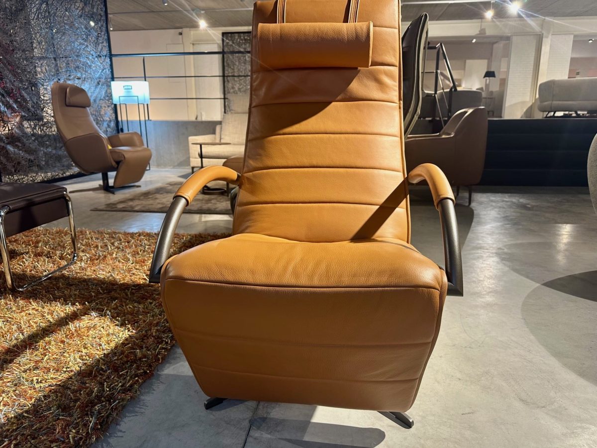 Home / Meubelen Outlet / Onze Merken / Jori Outlet / Elegante en design relaxzetel Mensana van Jori in cognackleurig Lipano Leder
