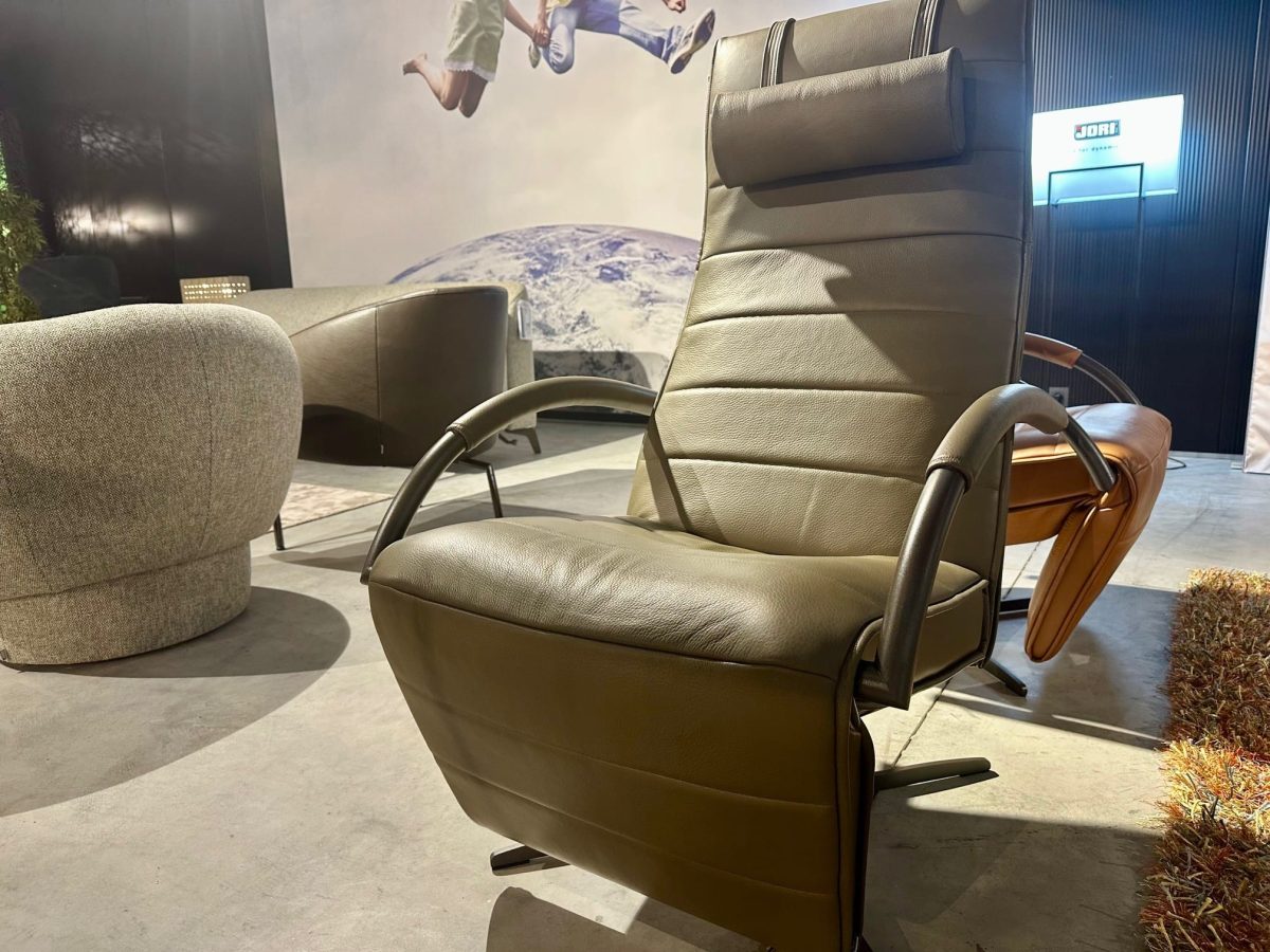 Home / Meubelen Outlet / Onze Merken / Jori Outlet / Elegante en design relaxzetel Mensana van Jori in khakikleurig Lipano Leder
