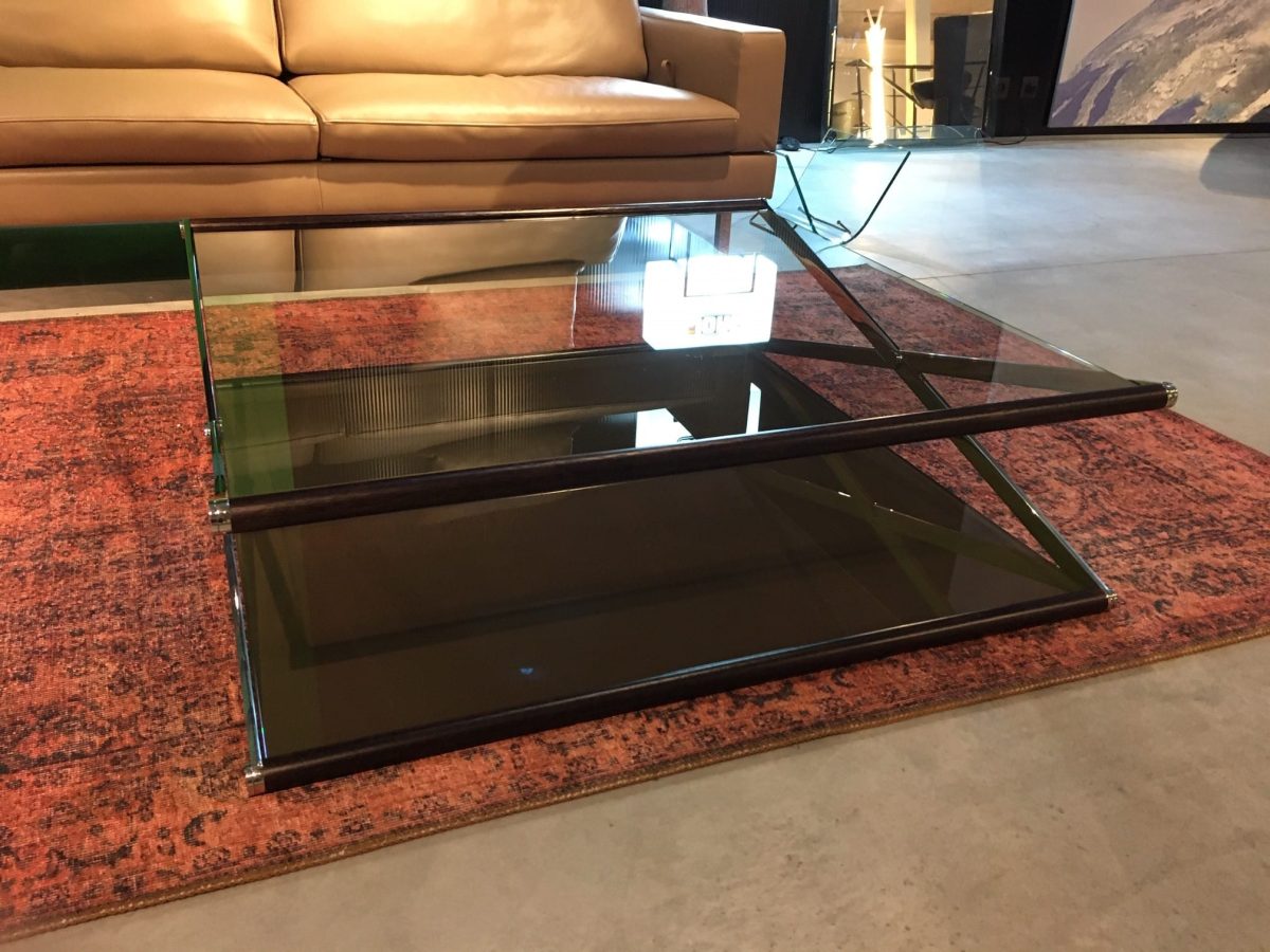 Home / Meubelen Outlet / Promoties Salons / SALONTAFEL NOX IN GLAS MET WENGE EN CHROOM AFWERKING (Galloti & Radice)