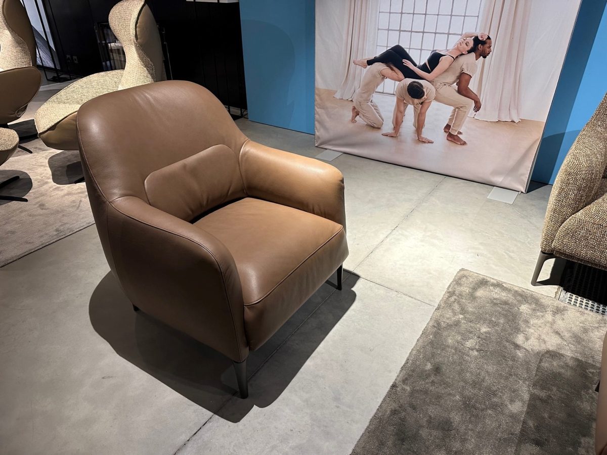 De ontwerper is hierbij heel voorzichtig te werk gegaan. De statig rechte vormgeving is zo goed als intact gebleven, enkel de buitencontouren krijgen dankzij een licht afgeronde vormgeving een zachtere lijn. De bies rondom geeft de sofa een actuelere uitstraling. Ook de poot krijgt een nieuwe verfijnde look. De draaibare armlegger, vandaag nog steeds een hit, blijft op dit model een functionele plus.