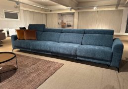 XXL zitbank in blauwe stof met 4 uittrekbare zittingen: 4zit wordt longchair voor 4